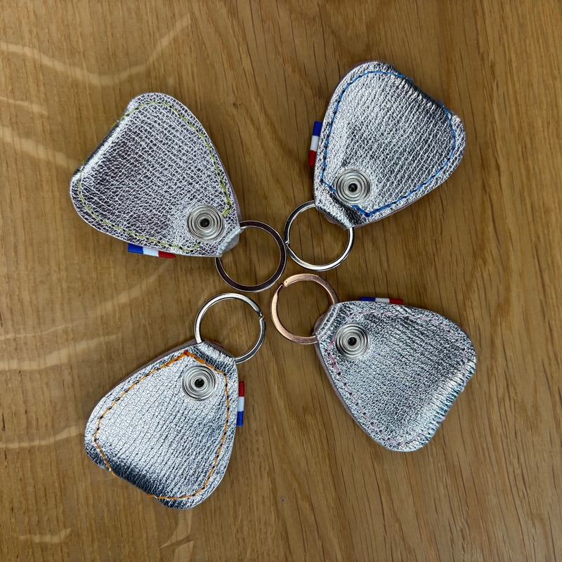 Fabriqués à la main en Bretagne dans notre atelier, ces porte-clés / porte-médiators en cuir sont conçus à partir de chutes de cuir soigneusement sélectionnées (chèvre, agneau, vachettes fantaisie…). Une manière élégante de valoriser les matières premières tout en limitant le gaspillage.