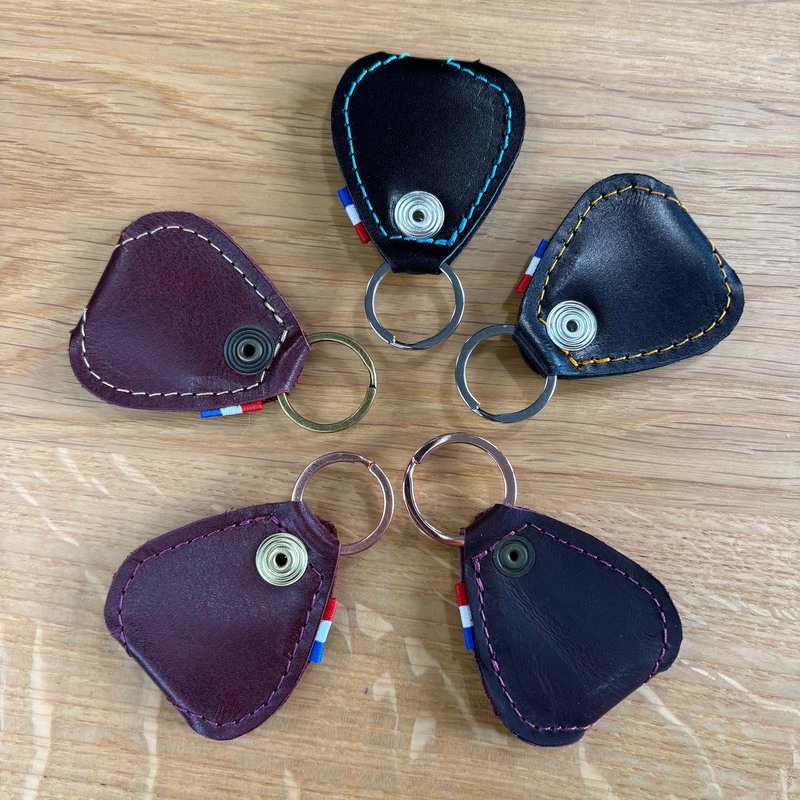 Fabriqués à la main en Bretagne dans notre atelier, ces porte-clés / porte-médiators en cuir sont conçus à partir de chutes de cuir soigneusement sélectionnées (chèvre, agneau, vachettes fantaisie…). Une manière élégante de valoriser les matières premières tout en limitant le gaspillage.