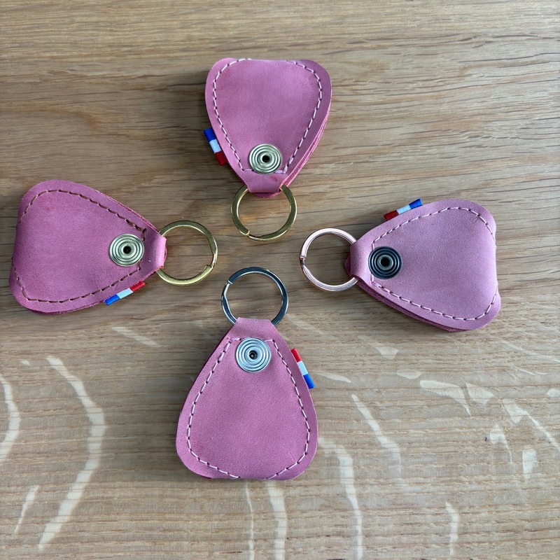 Porte-clés / Porte-médiators en cuir rose pâle mat : 16 € TTC